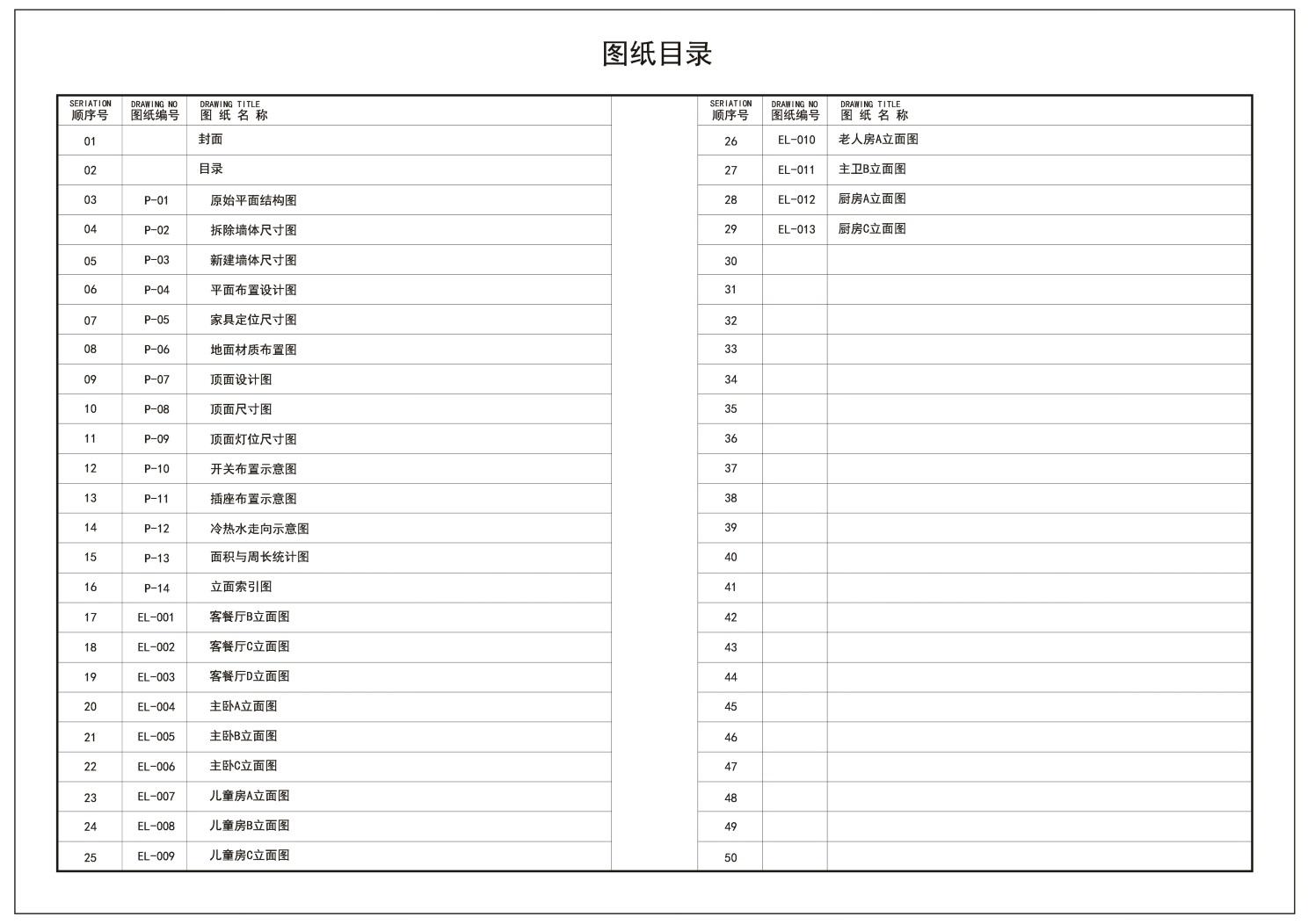 硬装设计图纸包括每个空间的:撤除、新建墙体图、平面图、立面图