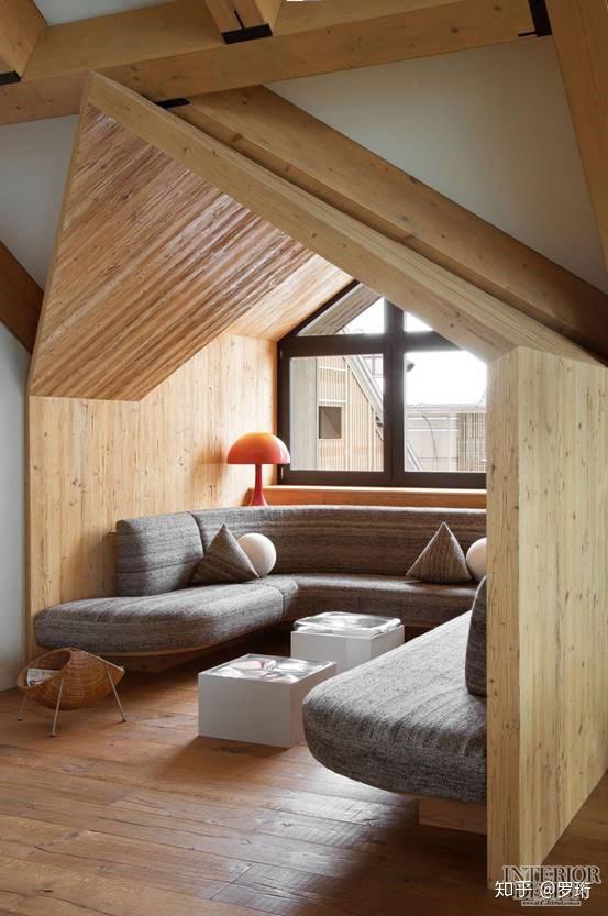 原木色的地板(橡木)+全体的灰颜色+局部高对比的颜色(明黄色,绿色)