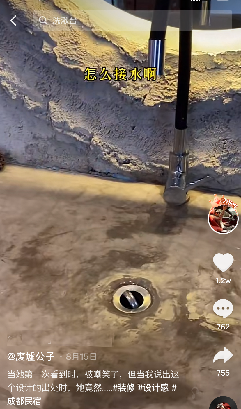 花了3万块设计费做的侘寂风水槽,样子就像我奶奶家的喂猪槽。