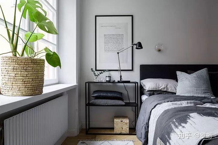稳重的灰颜色+简直没有纹理的原木色+黑色物件的装点