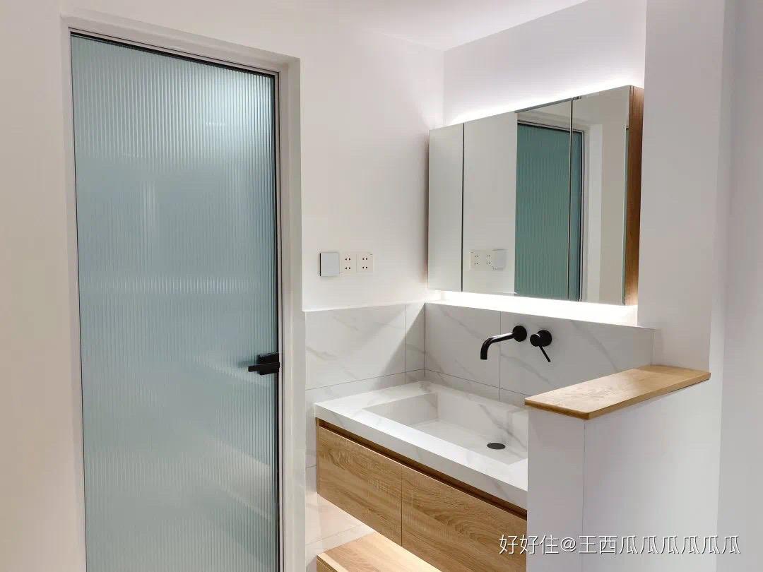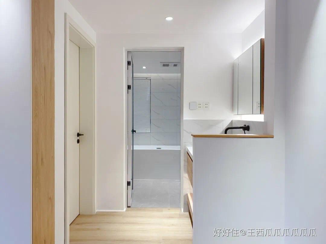 原本卫生间的位置是主卧的门以及过道,采光简直为 0 ,如今都通透了,简直看不出这个家只要 80㎡。