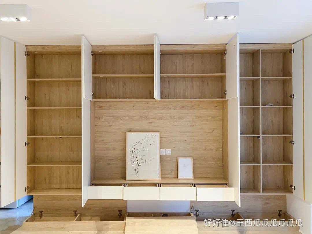 9、定制的柜体,一定要买经济接受范围里*好的,由于定制的柜体不比成品柜体,改换的时分会特别的费事,所以要用好一点的板材;