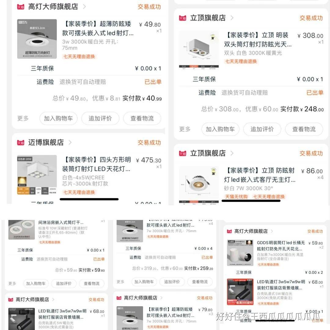 一切的灯具都是某宝推销的,性价比没得说。屋主说,射灯是一分钱一分货,200 元和 20 元的效果不一样,依照自己的预算选择。